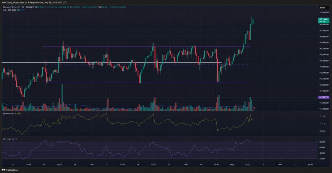بیت کوین [BTC] در زمان نگارش بالاتر از سطوح کلیدی مقاومت کوتاه مدت ۹۳.۱ هزار دلار معامله می شد و توانست از ۹۵.۳ هزار دلار هم عبور کند. اولی قیمت تحقق یافته دارندگان کوتاه مدت بود و دومی سقف محدوده ای بود که طی پنج روز گذشته در آن نوسان می کرد. تحلیلگر کریپتو ویلی وو دیدگاه صعودی دارد و انتظار حرکت قیمت به ۱۰۸ هزار دلار را می کشد. نقشه های حرارتی لیکوئیدیتی نیز هدف ۱۰۷ هزار دلار را پیش بینی کردند. در واقع معیارهای آن چین نشان دهنده بازگشت بازار پس از اصلاح نزولی بودند.