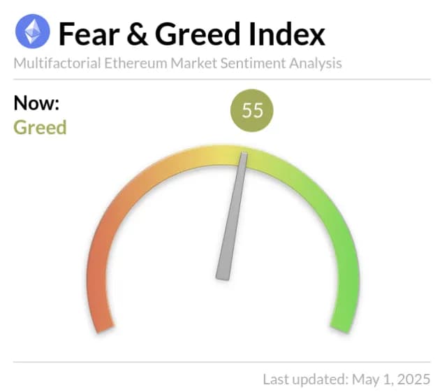 اما آیا معاملهگران نسبت به این بهروزرسانیها خوشبین و خوشحال هستند؟ احتمالاً بله؛ با توجه به شاخص ترس و طمع اتریوم (FGI) که در اول ماه مه در وضعیت «طمع» قرار داشت.