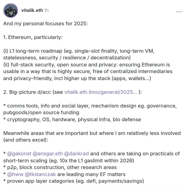 همزمان با معرفی اهداف خود برای سال ۲۰۲۵، نقشه راه لایه یک اتریوم در صدر فهرست قرار گرفت.