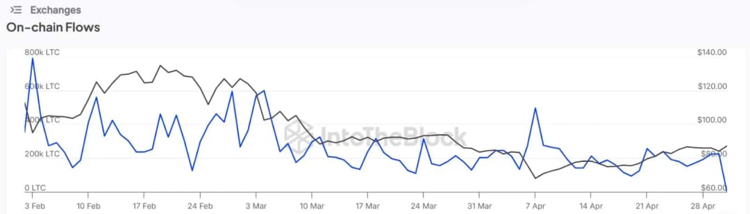 این انباشت با کاهش چشمگیر جریان ورود لایتکوین به صرافیها تایید میشود. در سه هفته اخیر، مجموع جریان ورودی به صرافیها به کمترین سطح سهماهه رسید که گویای رفتار انباشتی کاربران است.