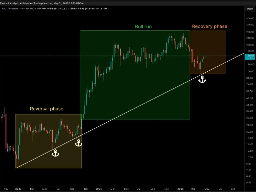قیمت سولانا در آستانه شروع یک فاز بازیابی قرار دارد که میتواند با رشد ۱۰۰ درصدی به ۳۰۰ دلار ختم شود. این موضوع بر اساس تحلیل میهیر است که میگوید از سال ۲۰۲۳ تاکنون SOL روند صعودی داشته و از خط روند صعودی پایینی دفاع کرده است.