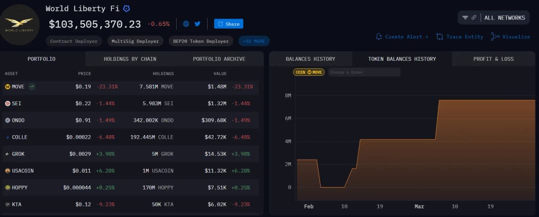 Movement یک بلاکچین لایه دوم مبتنی بر اتریوم است که توسط World Liberty Financials (WLFI) پشتیبانی میشود. بر اساس دادههای Arkham، شرکت WLFI متعلق به ترامپ همچنان ۷.۵ میلیون توکن MOVE (معادل ۱.۳ میلیون دلار) در اختیار دارد، با وجود این رسوایی.