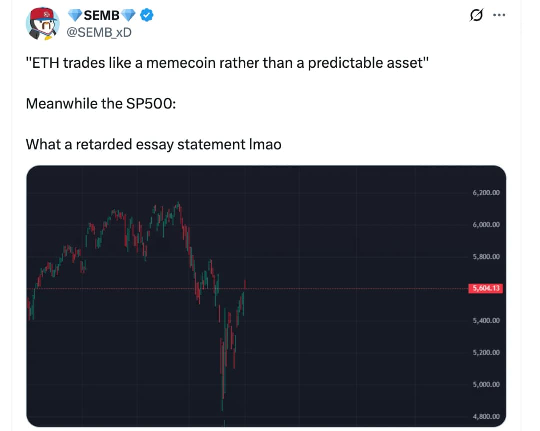 «چه بیانیهٔ مضحکی» یکی از ناظران بازار در پیام خود در X نوشت و به نوسانات بالای شاخص S&P 500 اشاره کرد که از ابتدای سال ۴.۷٪ کاهش داشت.