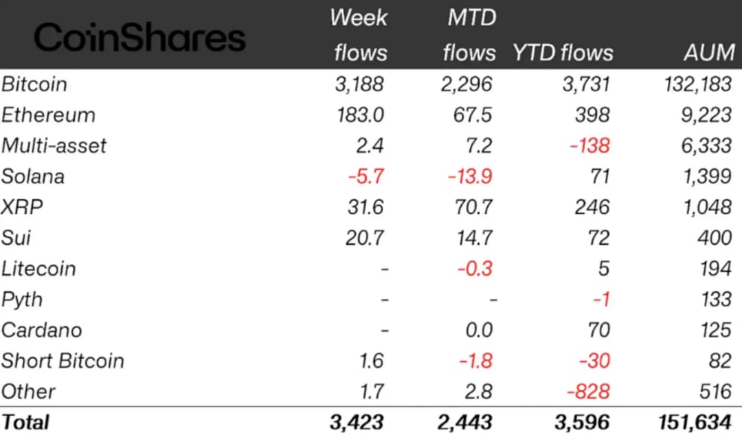 با وجود عملکرد ضعیف ETFهای اتر، اتر همچنان بزرگترین آلتکوین در میان محصولات ETF کریپتو از نظر دارایی تحت مدیریت است و بهطور چشمگیری از سولانا و XRP پیشی گرفته است. بر اساس آخرین گزارش CoinShares، محصولات مبتنی بر اتر تا پایان هفته گذشته ۹.۲ میلیارد دلار دارایی تحت مدیریت داشتند، در حالی که سولانا و XRP بهترتیب ۱.۴ و ۱ میلیارد دلار را ثبت کردند.