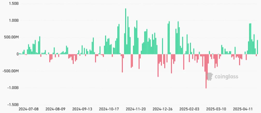 این حرکت قیمتی همزمان با ورود خالص قابلتوجه به صندوقهای قابلمعامله بیت کوین (ETF) نقدی آمریکا بوده است.