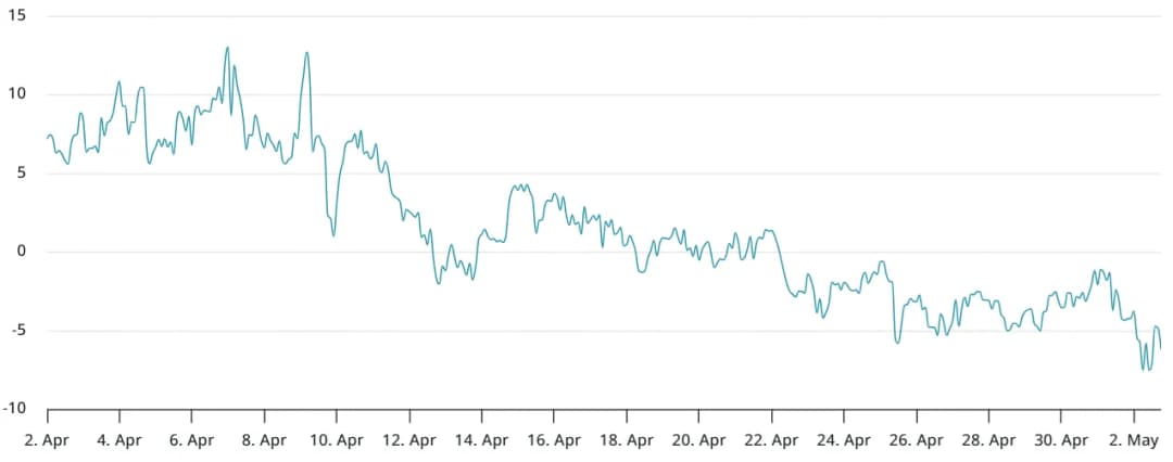 در مجموع، مشتقات بیت کوین خوشبینی متوسط را نشان میدهند. معاملهگران عموماً انتظار رشد بیشتر قیمت را دارند اما گاوها از اهرم مالی استفاده نمیکنند. برخی ممکن است بگویند این شرایط برای جهش ناگهانی ایدهآل است، بهویژه که بازآزمون ۷۴٬۵۰۰ دلاری در ۹ آوریل تأثیر قابلتوجهی بر مشتقات BTC نداشت.