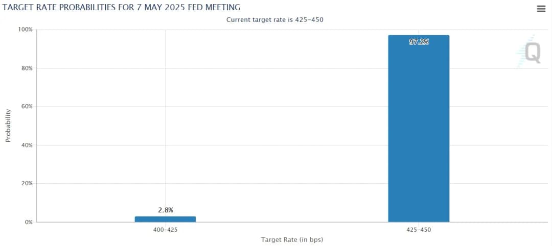 این اظهارنظر نشاندهنده نبود راهحل در کوتاهمدت است که باعث فشار نزولی بر دلار آمریکا شده و شاخص DXY را به پایینترین سطح بیش از چهار سال اخیر رسانده است. با تضعیف دلار، احتمال کاهش نرخ بهره توسط فدرال رزرو وجود دارد، هرچند دادههای CME FedWatch Tool نشان میدهد ۹۷٪ سرمایهگذاران کاهش نرخ در جلسه FOMC هفتم میدانند.