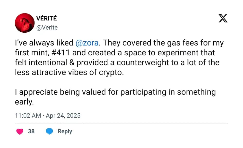 خواننده مستقل Vérité که صدها میلیون بار پخش شده و از پیشگامان فناوری Web3 است، به Cointelegraph گفت: «در سطح پایه، بابت پاداش مشارکت زودهنگام سپاسگزارم.» او افزود: «احساس میکنم تیم آنها واقعاً به دنبال خلق مدلهای جدید ارزشیابی آثار دیجیتال هستند و فرهنگی متفاوت در مقابل فضای بد کریپتو ساختهاند.»