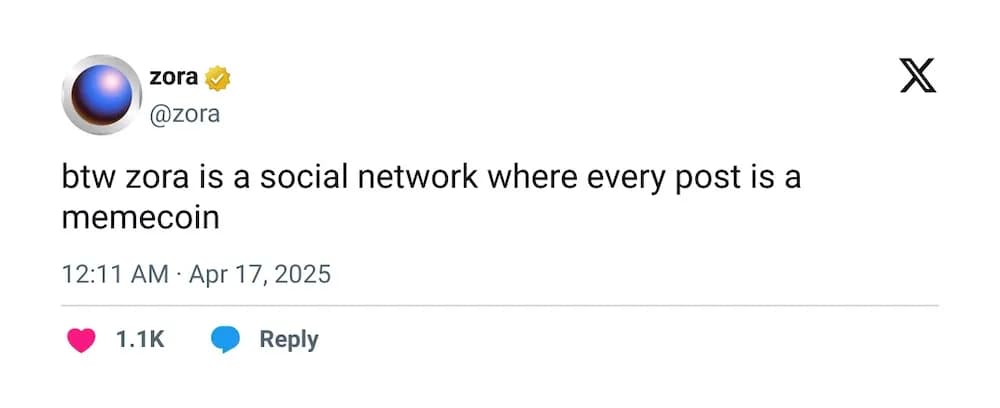عرضه توکن ZORA آخرین حرکت در مسیری است که از مدل سنتی NFT به سوی میمکوینها رفته است. پیشتر هر پست روی زورا به شکل NFT ضرب میشد، اما حالا هر پست یک میمکوین قابل معامله موسوم به content coin ایجاد میکند.