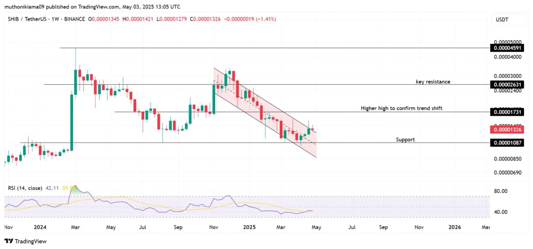 امروز ارزش SHIB سیگنالهای نزولی نشان میدهد و با ۲٪ کاهش، در لحظه نگارش مقاله حولوحوش ۰.۰۰۰۰۱۳ دلار معامله میشود. این افتها پس از عقبنشینی کلی بازار ارزهای دیجیتال رخ داده که با سقوط قیمت بیت کوین (BTC) به زیر ۹۶,۰۰۰ دلار آغاز شد.