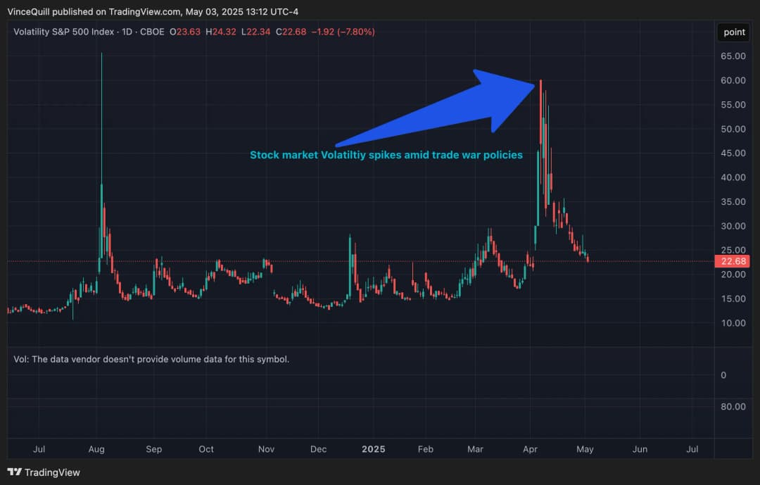طلا در آوریل ۲۰۲۵ و در پی تعرفههای تجاری اعلامشده توسط رئیسجمهور ایالات متحده، دونالد ترامپ، به بالاترین سطح تاریخ خود یعنی ۳۵۰۰ دلار به ازای هر اونس رسید. این سیاستهای تجاری محافظهکارانه و واکنش متقابل سایر کشورها موجب آشفتگی در بازارهای پرریسک مانند سهام و رمز ارزها شد. معاملهگران برای کاهش نوسانات شدید به طلا، نقدینگی و سایر داراییهای امن پناه بردند.