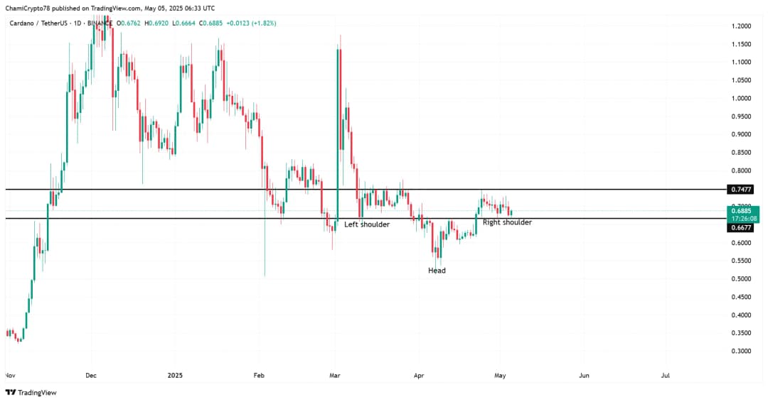 در لحظه نگارش این گزارش، ADA با قیمت ۰٫۶۸۷۵ دلار معامله میشود که نشاندهنده کاهش ۲٫۰۶ درصدی طی ۲۴ ساعت گذشته است. با این حال، قیمت همچنان بالای سطوح ساختاری کلیدی قرار دارد؛ نشانهای از آنکه فشار خرید میتواند تقویت شود.