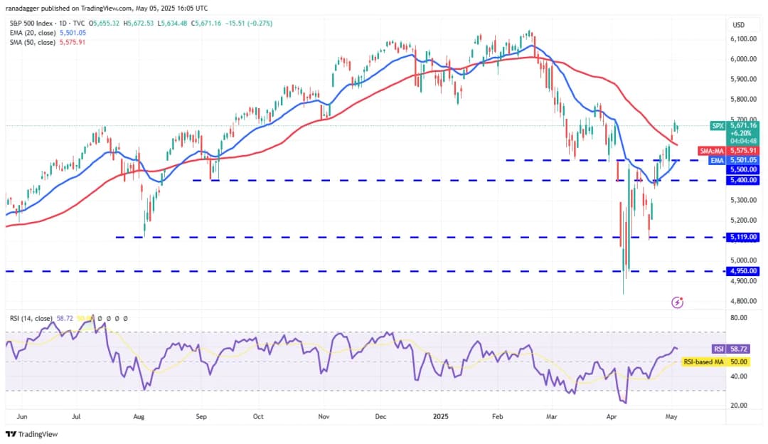 پیشبینی قیمت ۵/۵: SPX، DXY، BTC، ETH، XRP، BNB، SOL، DOGE، ADA، SUI