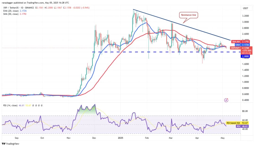 هر دو میانگین متحرک تقریباً تخت شده و RSI کمی پایینتر از میانه قرار دارد که تعادل بین عرضه و تقاضا را نشان میدهد. این وضعیت در صورت عبور قیمت بالای خط مقاومت به نفع گاوها تغییر خواهد کرد. در این صورت جفت XRP/USDT میتواند تا ۳ دلار صعود کند و نشانه تغییر روند کوتاهمدت باشد. برعکس، شکست و بسته شدن زیر ۲ دلار دست کنترل را به فروشندگان میدهد و ممکن است قیمت را به حمایت مهم ۱.۶۱ دلار برساند.