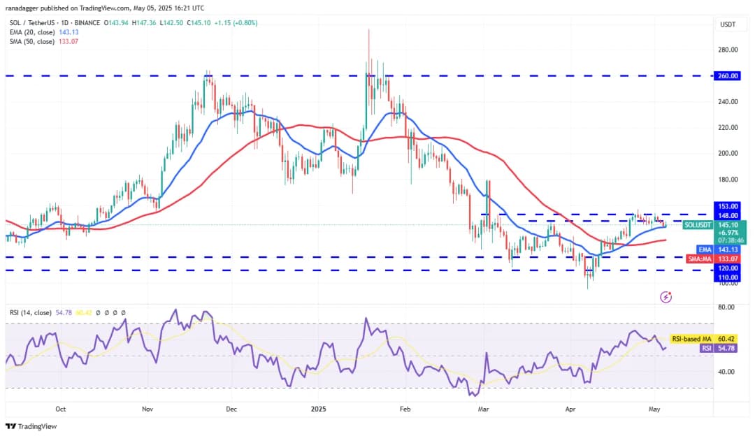 سولانا در میانگین متحرک نمایی ۲۰ روزه (۱۴۳ دلار) حمایت مییابد که نشان میدهد گاوها در ریزشها خریدار هستند.
