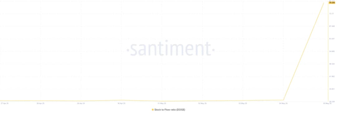 نسبت سهام به جریان (Stock-to-Flow) این میمکوین اکنون به 79 رسیده که یک رکورد هفتگی است.