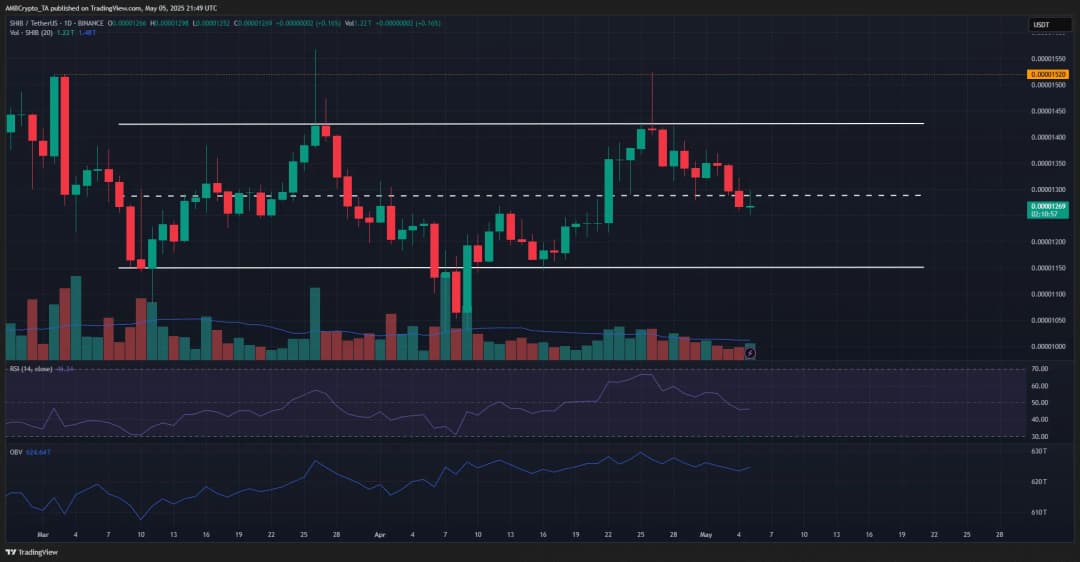 تا زمان نگارش این گزارش، شیبا اینو [SHIB] در یک الگوی محدوده دوماهه معامله میشد. در واقع، رفتار قیمتی طی چند روز گذشته نشان داد که خرسها در حال به دست آوردن تسلط هستند. گزارشی اخیر نیز فشار فروش سنگین از سوی برخی نهنگها را برجسته کرد.