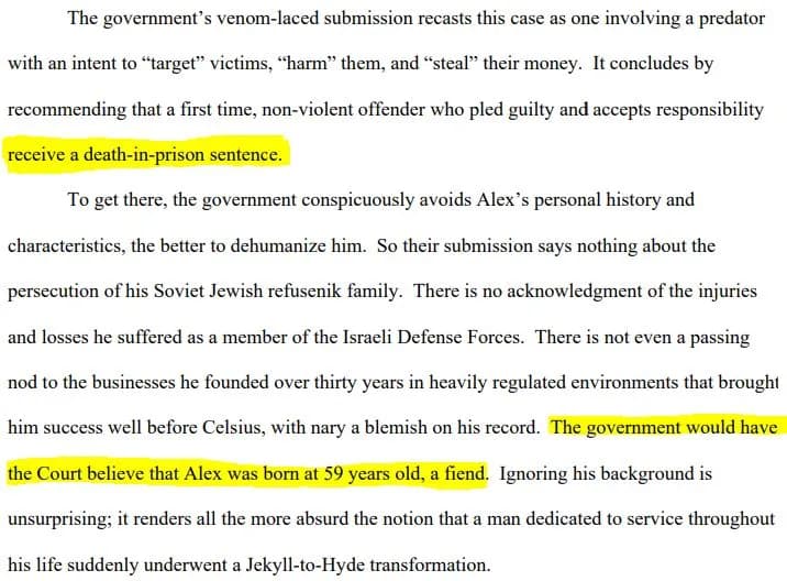 الکس ماشینسکی، بنیانگذار و مدیرعامل سابق پلتفرم وامدهی رمزارزی سلسیوس که اکنون ورشکسته است، به درخواست وزارت دادگستری ایالات متحده برای صدور حکم دستکم ۲۰ سال زندان واکنش تندی نشان داد و آن را «حکم مرگ در زندان» خواند. با اعمال این حکم، این مدیر ۵۹ ساله در صورت گذراندن کامل دوره محکومیت، ۷۹ ساله خواهد شد.