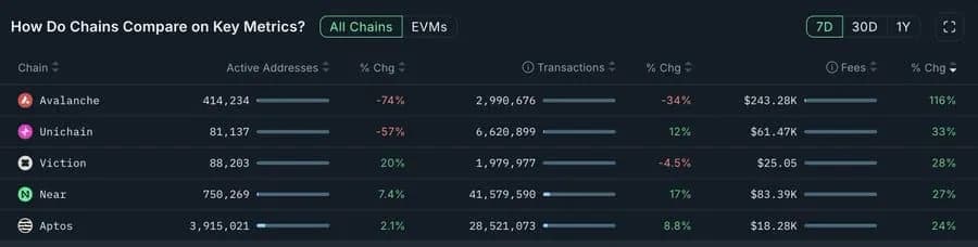 طبق گزارشی از Nansen، AVAX در موقعیتی پارادوکسیکال قرار گرفته که ناشی از اقدامات متفاوت نهنگها و معاملهگران خرد است. این تحلیل کاهش ۷۴٪ در «آدرسهای فعال»—که به ۴۱۴٬۲۳۴ رسیده—و ۳۴٪ کاهش در معاملات به ۲٬۹۹۰٬۶۶۷ را تأیید میکند و علاقه خردهمعاملهگران را نشان میدهد.