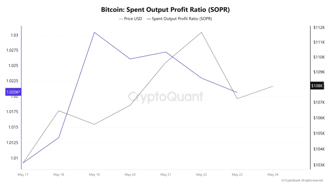 پشتیبان این دیدگاه، شاخص Spent Output Profit Ratio (SOPR) است. این شاخص پنج روز متوالی کاهش یافته، با وجود آنکه قیمت به ۱۱۲٬۰۰۰ دلار رسیده است. حتی پس از رسیدن قیمت به رکورد جدید، SOPR افت کرده که نشان میدهد هولدرها، گرچه در سود هستند، اما از فروش امتناع میکنند. این کاهش برداشت سود در میان نهنگها و خردهتریدرها به یک اندازه مشاهده میشود.