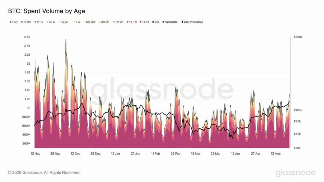 در حالی که افزایش قیمت معمولاً به برداشت سود بیشتر منجر میشود، رفتار سرمایهگذاران در این چرخه کاملاً متفاوت است و نشاندهنده اعتماد بیشتر است. در نتیجه، مجموع حجم برداشتشده براساس سن دارایی در این رالی قیمتی حدود ۱.۱ میلیارد دلار کمتر از رالی قبلی است.