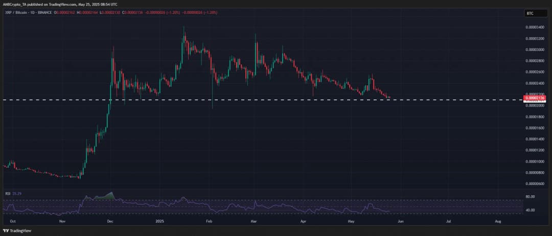 مگر اینکه سرمایه چرخشی و سفتهبازی به سمت XRP بازگردد، این توکن ممکن است در محدوده فعلی باقی بماند. حتی با وجود بنیادهای قوی، در حالی که رقبای اصلی آن همچنان به اوجهای جدید در برابر بیت کوین دست مییابند، ریپل احتمالاً فعلاً از دایره توجه اصلی خارج خواهد ماند.