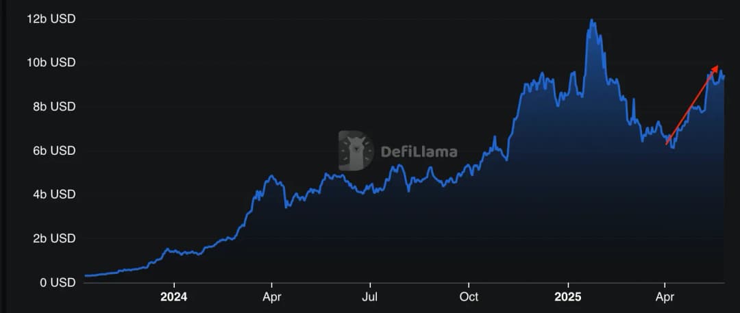 ارزش کل قفلشده (TVL) در بلاکچین سولانا از سطوح چندماهه کم ۶.۱۲ میلیارد دلار در ۷ آوریل، بیش از ۵۴٪ رشد کرده و به ۹.۴۴ میلیارد دلار در ۲۶ مه رسیده است. این رقم در ۳۰ روز گذشته نیز نزدیک به ۲۰٪ افزایش یافته است.