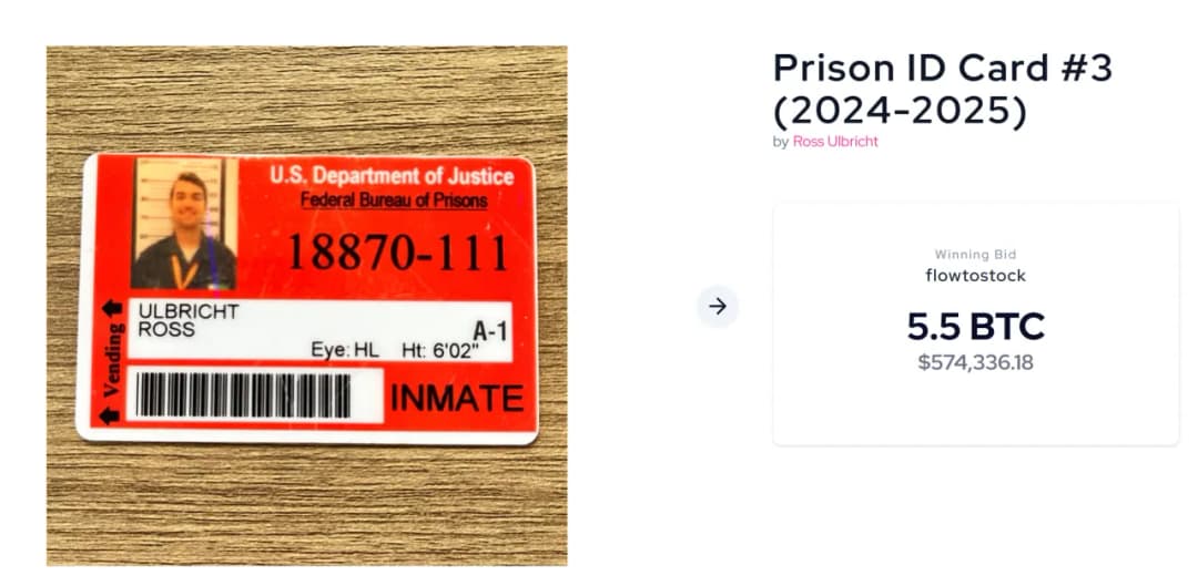 یکی از برجستهترین اقلام، کارت شناسایی نهایی زندان اولبریشت بود که با ۱۱ واحد بیت کوین (بیش از ۱.۱ میلیون دلار) معامله شد. او درباره آن گفت: «نگهبان میخواست لبخندم را از عکس بردارد، اما شادیام درونم بود و آن روز لبخند زدم، حتی اگر در زندان بودم.»