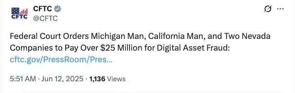 CFTC به سرمایهگذاران متضرر هشدار داد که ممکن است پول خود را باز پس نگیرند، چرا که مذکورین شاید دارایی یا منابع کافی برای بازپرداخت نداشته باشند. اوایل امسال، دادگاه کریتر را نیز به پرداخت ۷.۶ میلیون دلار به سرمایهگذاران محکوم کرد. در فوریه ۲۰۲۴، دادگاه تجدیدنظر درخواست محاکمه مجدد کریتر را رد کرد، چرا که تیم حقوقی او ادعا کرده بود حقوق او طبق اصلاحیه ششم قانون اساسی نقض شده است. در تاریخ ۳۱ ژانویه ۲۰۲۳، کریتر پس از محکومیت در جولای ۲۰۲۲ توسط هیات منصفه، به بیش از هشت سال زندان بابت چهار فقره کلاهبرداری اینترنتی، سه فقره تراکنش مالی غیرقانونی و یک فقره مدیریت کسبوکار انتقال وجه بدون مجوز محکوم شد.