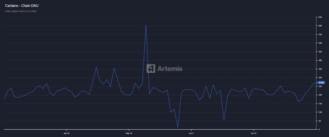 افزایش فعالیت درونزنجیرهای این نگاه مثبت را تقویت کرده است. طبق دادههای Artemis، تعداد کاربران فعال روزانه (DAU) به ۲۷ هزار نفر رسیده و این بیشترین میزان از اواخر ماه مه محسوب میشود. همچنین تعداد تراکنشها نیز بالای ۳۸ هزار مورد ثبت شد که آن هم یک رکورد چندماهه است.