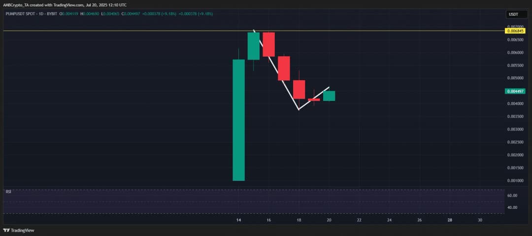 در سمت بازندگان، پمپفان (PUMP) با ۴۰ درصد افت بیشترین ضرر را داشت. پس از رشد اولیه و ثبت سودهای کوتاهمدت، سرمایهگذاران به سرعت سود خود را برداشتند و روند نزولی شدیدی در پیش گرفت. باوجود این، یک جهش روزانه ۸.۸۶ درصدی از کف قیمت نشان داد هنوز تمایل به خرید به هنگام کاهش قیمت وجود دارد. با این حال، برای تثبیت روند صعودی، باید چند روز معاملاتی آرام و بدون نوسان شدید شکل بگیرد.