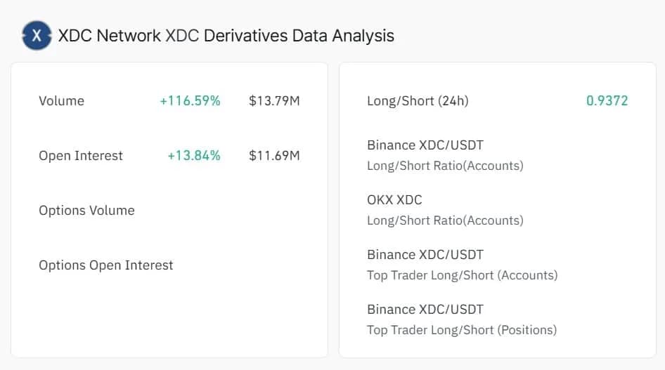 با این حال، نسبت لانگ/شورت ۰.۹۳۷ بوده که کمتر از ۱ است و نشان میدهد اکثریت معاملهگران همچنان موضع فروش (شورت) دارند و بهرالی اخیر XDC اعتماد کامل ندارند.