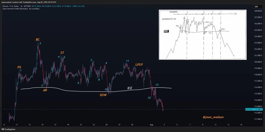 رفتار اخیر قیمت بیت کوین همین دیدگاه را تایید میکند. در تاریخ ۱ اوت، قیمت بیت کوین به ۱۱۲ هزار دلار (کمترین سطح از ۱۰ جولای) رسید و بعد از سقوط از ۱۱۷ هزار دلار، این افت میتواند فشار فروش نهادهای بزرگ را نشان دهد.