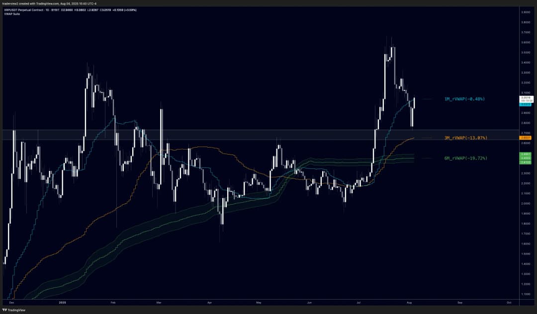 تحلیلگر دیگری به نام Dom معتقد است حفظ سطح ۲.۸۰ دلار نشانه خوبی برای XRP است و فعلاً خطر شکست حمایت ۲.۶۵ دلار را دور نگه داشته است. این سطح، که با VWAP (میانگین موزون حجم معاملات) فصل اخیر همراستا است، توسط بسیاری از تریدرها بهعنوان نشانهای از ارزش منصفانه دارایی در نظر گرفته میشود. دُم هشدار میدهد اگر قیمت از این ناحیه پایینتر برود، ساختار مثبت کوتاهمدت کاملاً زیر سؤال میرود.