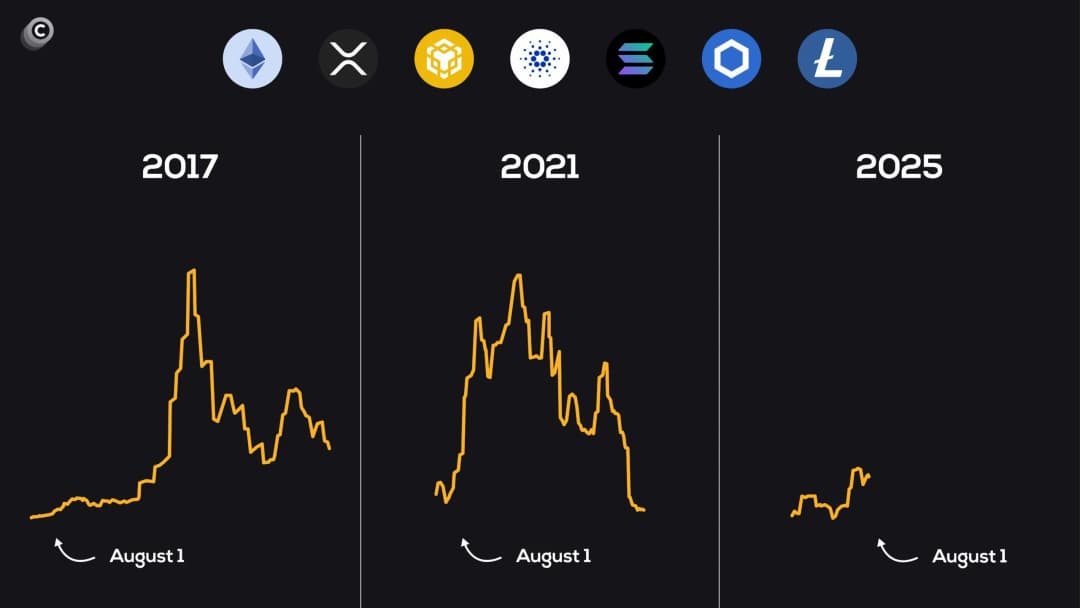 این جهش پس از ماهها کمتحرکی از اوجهای اواخر دسامبر ۲۰۲۴ و اوایل ۲۰۲۵ رخ میدهد. با این حال، معاملهگران چشمبهراهاند تا ببینند آیا این میتواند مقدمهای برای یک فصل پایدار آلتکوین باشد یا خیر.