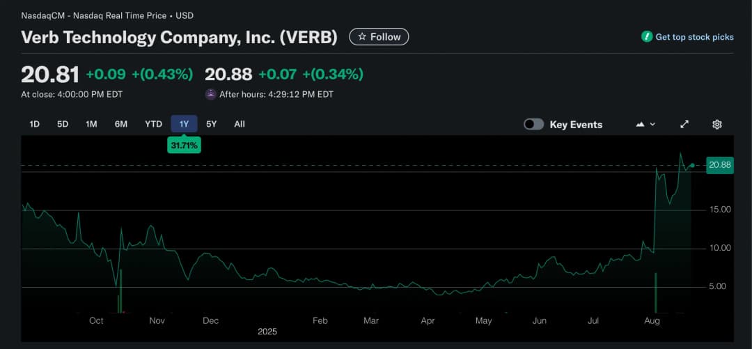 شرکت VERB Technology، یک شرکت تملک برای تونکوین (TON)، اعلام کرد که حدود ۷۱۳ میلیون دلار در TON و ۶۷ میلیون دلار نقد جمعآوری کرده و مجموع داراییهایش بیش از ۷۸۰ میلیون دلار است. این شرکت در آگوست یک عرضه خصوصی به مبلغ ۵۵۸ میلیون دلار تکمیل کرد که باعث شد قیمت سهام آن بیش از ۲۰۰٪ افزایش یابد. طبق اعلامیه روز پنجشنبه، اکثر این وجوه برای خرید TON استفاده شد. VERB هدف گرفته است که با صدور بدهی و سهام شرکتی و استیک کردن برای کسب پاداش بیشتر، حدود ۵ درصد از عرضه در گردش این آلتکوین—حدود ۱۲۸ میلیون توکن—را به دست آورد.