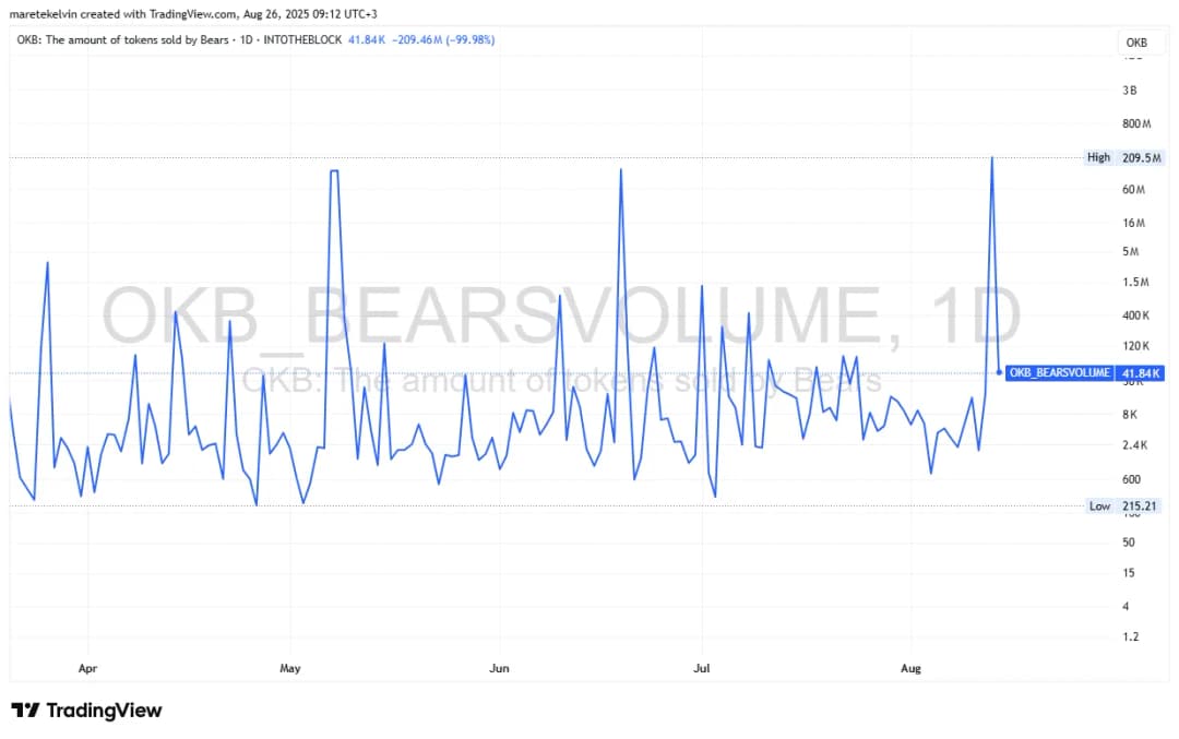OKB تقریباً ۱۰٪ کاهش یافت چون حجم فروش خرسها از 209.5 میلیون به 41.8 هزار سقوط کرد. آدرسهای نگهدارنده حدود ۱۳.۷٪ کاهش یافت که نشاندهنده خروج سرمایهگذاران خرد است. سطح حمایتی نزدیکی ۱۲۵ دلار و روند حجم معاملات اسپات در تعیین جهتگیری کوتاهمدت نقش کلیدی خواهند داشت.