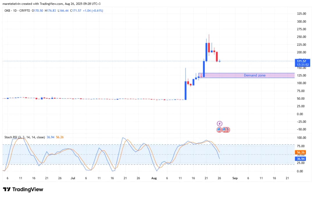 در کوتاهمدت، تمرکز باید بر این باشد که آیا توکن میتواند سطوح حمایتی کلیدی را حفظ کند — سطح بعدی منطقه تقاضا نزدیک ۱۲۵ دلار است. حجم معاملات اسپات نیز حیاتی خواهد بود. تجمع مجدد در حجم میتواند نشانه بازگشت باشد؛ در غیر این صورت، نبود تقاضای تازه ممکن است OKB را در معرض یک روند نزولی عمیقتر قرار دهد.