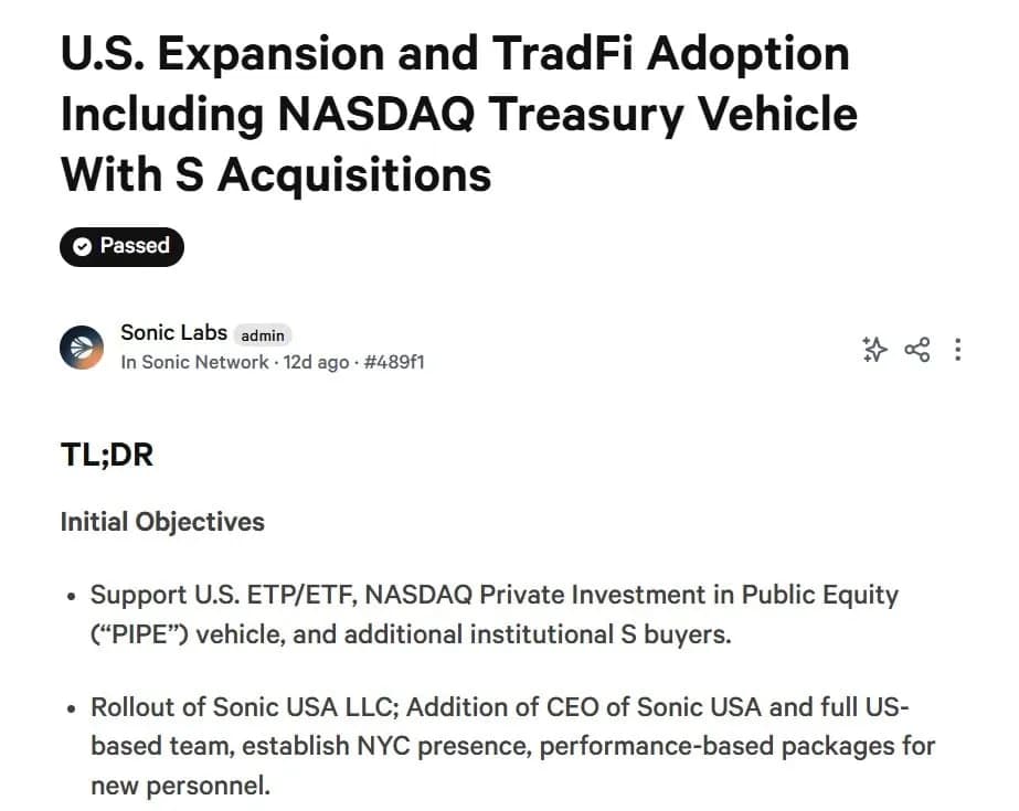 سونیک در یک رأیگیری جامعهای پیروز شد و تصمیم گرفت پای خود را در بازار آمریکا محکم کند — ۹۹.۹۹٪ موافق. این گسترش شامل ایجاد شرکت Sonic USA LLC، استخدام مدیرعامل و تیم محلی، و افتتاح دفتر در نیویورک برای تقویت حضور میشود.