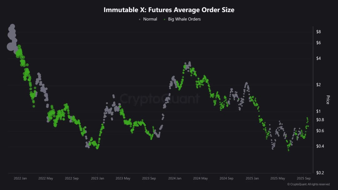 نگاهی دقیقتر به این جهش دلایل واقعی رشد 11 درصدی قیمت را روشن کرد. ابتدا Market Prophit گزارش داد که احساسات نسبت به این بخش تغییر کرده و جمعیت نسبت به IMX خوشبین شده است. علاوه بر این، سرمایه وارد این بخش شد؛ به طور مشخص ارزش بازار IMX حدود 109.9 میلیون دلار سرمایه جدید جذب کرد. این افزایش پس از راهاندازی دپارتمان بازی موبایلی آن رخ داد که بازار هدفی به ارزش 121 میلیارد دلار دارد. همچنین نهنگ ها با ریسک بالایی روی رمز ارز گیمینگ شرطبندی کردند و آنها عامل گردش سرمایه به سمت IMX بودند. این نهنگ ها از زمان معامله IMX در حدود 0.40 دلار در اواخر ژوئن در حال accumulation بودند.