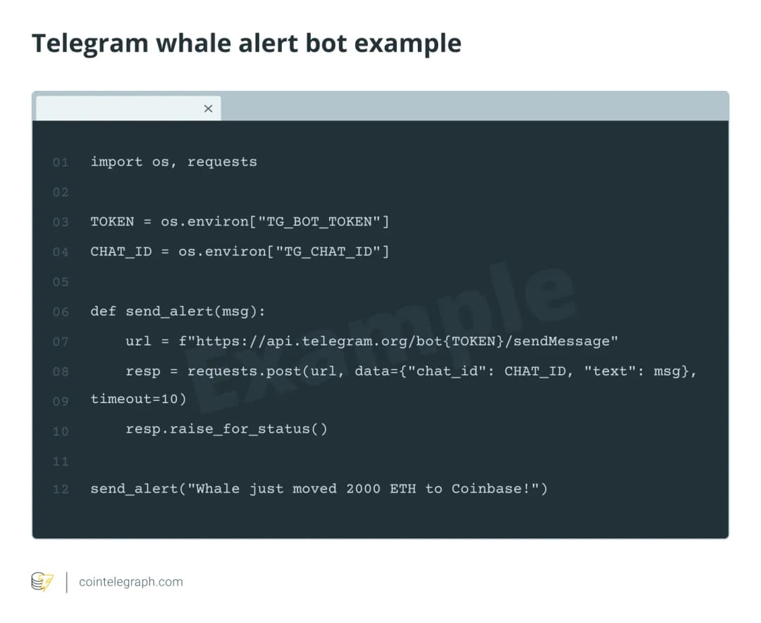 مرحله 4: هشدارها و اجراهای خودکار. اعلان های لحظه ای را با استفاده از Discord یا Telegram راه اندازی کنید، یا حتی فراتر رفته و یک ربات معامله گر خودکار بسازید که در پاسخ به سیگنال های نهنگ معامله انجام دهد.