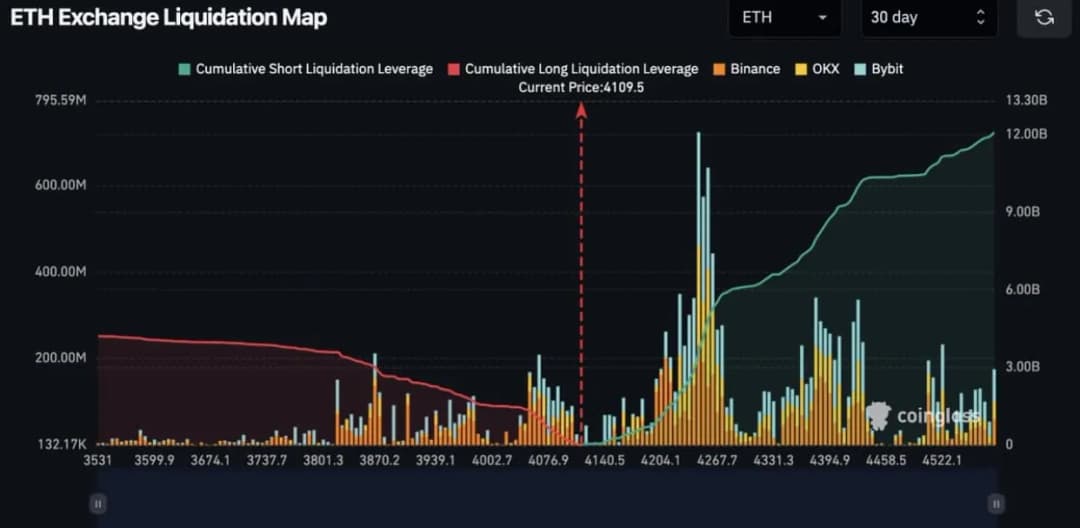 و اگر ترس بازار خودش را پس زده باشد، نکته مهمتر این است: بیش از ۱۰ میلیارد دلار شورت اتریوم اکنون خطرناک نزدیک به لیکوئید شدن هستند. اگر ETH تا سطح ۴٬۳۵۹ دلار بالا برود، میتواند یک شورت اسکوئیز کلاسیک را برانگیزد و مجبور کند معاملهگران نزولی سریعاً پوزیشنهای خود را ببندند. این حرکت، قیمت اتریوم را بالاتر خواهد برد.