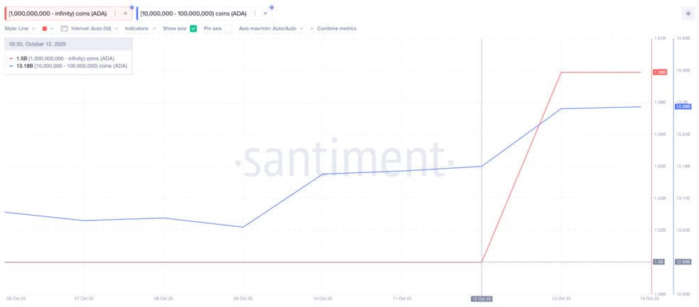 شاخص دوم، افزایش نرخ انباشت در میان هولدرهای بزرگ است. بررسی دادههای کیف پولها نشان میدهد تعداد آدرسهایی که بیش از ۱۰ میلیون آدا در اختیار دارند در هفته گذشته به طور چشمگیری افزایش یافته است. این رفتار معمولاً نشانه اعتماد سرمایهگذاران بلندمدت و انتظار آنها برای حرکت صعودی است.
