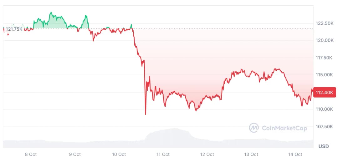 بازار کریپتو روز جمعه پس از اعلام رئیسجمهور آمریکا درباره وضع تعرفه 100 درصدی روی کالاهای چینی دچار ریزش شد و بیش از 19 میلیارد دلار لیکوئید شدن در سراسر بازار به ثبت رسید. پس از سقوط از حدود 121,000 دلار تا پایینترین سطح نزدیک به 102,000 دلار در جمعه، بیت کوین (BTC) طبق دادههای CoinMarketCap تا زمان انتشار این مطلب بازگشت قیمت کرده و در حدود 112,400 دلار معامله میشد.