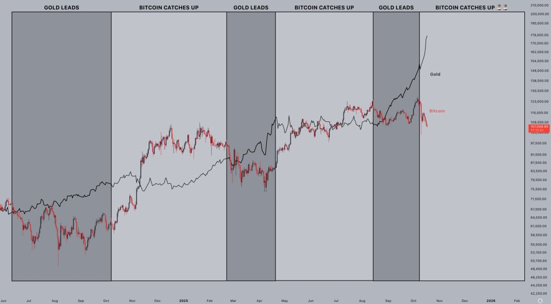 شیف در تبادل های اخیر خود در X استدلال کرد که این فقط یک معامله ضد دلار نیست بلکه یک معامله ضد بیت کوین هم هست و بیت کوین در آزمون خود به عنوان جایگزینی قابل اتکا برای دلار آمریکا یا طلای دیجیتال شکست خورده است. در مقابل، عده ای دیگر پیشنهاد دادند که احتمال چرخش سرمایه به سمت BTC بیشتر شده است. معامله گر رمز ارز Jelle در X نوشت به هر حال منطقی است که به زودی شاهد خروج سودها از طلا باشیم با توجه به نحوه رفتار بازار. نموداری ضمیمه نیز مراحل هدایت قیمت توسط بیت کوین و سپس همپای شدن طلا را در سال های گذشته نشان می داد.