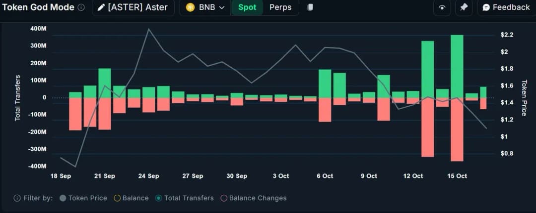 این فعالیت فروش محدود به نمونه های منفرد نیست. بر اساس Nansen، نهنگ های Aster در 24 ساعت گذشته در مجموع 62.61 میلیون توکن فروخته اند که نشان دهنده یک روند گسترده تر از لیکوئید شدن در مقیاس بزرگ است. اغلب زمانی که نهنگ ها در دوران نزولی بازار به طور تهاجمی اقدام به فروش می کنند، این امر نشان دهنده کمبود اعتماد بازار است و معمولاً پیش از کاهش بیشتر قیمت ها رخ می دهد.