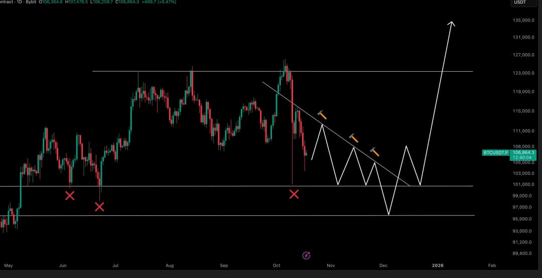 BTC/USD در آستانه سقوط تا 95K؛ RSI نشان از بازگشت قیمت دارد