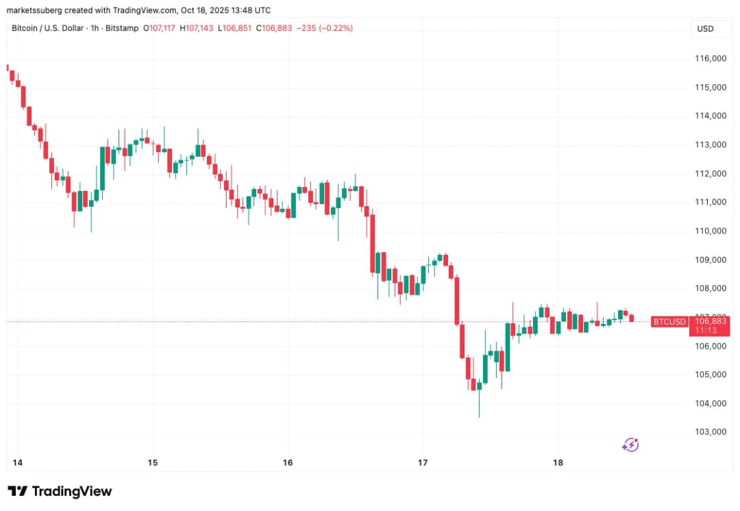 قیمت بیت کوین ( BTC ) روز شنبه حوالی 107,000 دلار آمریکا قرار داشت در حالی که معامله گران خود را برای ثبت کف های تازه آماده می کردند. داده های Cointelegraph Markets Pro و TradingView نشان داد که نوسان قیمت BTC در آستانه انتهای هفته کاهش یافته است. این کاهش نوسان پس از هفته ای پر از شگفتی های ناخوشایند که باعث شد جفت BTC/USD باز هم حدود 7% افت کند، به گاوها نفس موقتی داد.