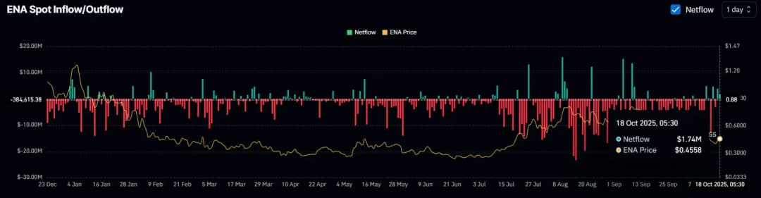 پلتفرم مشتقات CoinGlass نشان میدهد که در ۲۴ ساعت گذشته صرافیها جریان ورودی ۱.۷۴ میلیون دلار معادل توکن ENA را ثبت کردهاند. این جریان ورودی که نشاندهنده انتقال داراییها از کیفپولها به صرافیها است، میتواند هشداری برای احتمال فعالیت فروش (dumping) باشد.