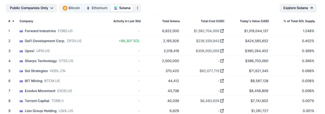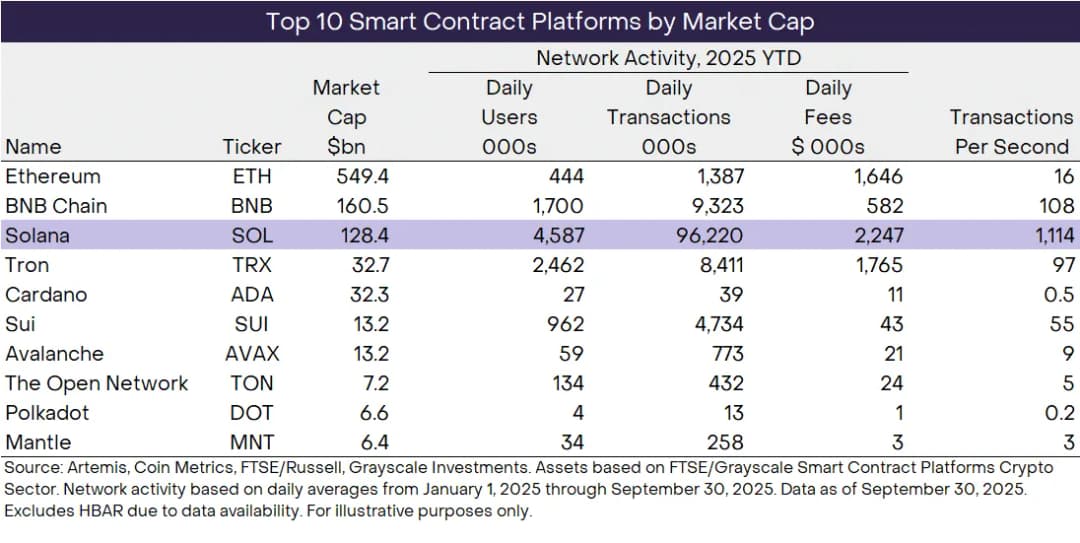 گزارش Grayscale به وضوح بر کمارزشگذاری سولانا تأکید دارد. در مقایسه با دیگر لایههای یک، ارزش بازار SOL بهطور کامل قدرت بنیادهای شبکه آن را بازتاب نمیدهد. معیارهای .درون شبکه نشان میدهد سولانا از BNB Chain پیشی گرفته، اما ارزش بازار آن در حدود ۱٫۵ برابر کوچکتر باقی مانده است. با این وجود، نهادها شروع به نشان دادن اولویت خود کردهاند: نه شرکت عمومی در مجموع ۲٫۵٪ از عرضه SOL را در اختیار دارند، در مقابل تنها دو شرکت که ۰٫۴۴٪ از عرضه BNB را دارند؛ این موضوع نشانه افزایش اعتماد به ابزارهای توسعه و اکوسیستم سولانا است.